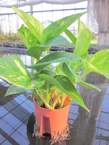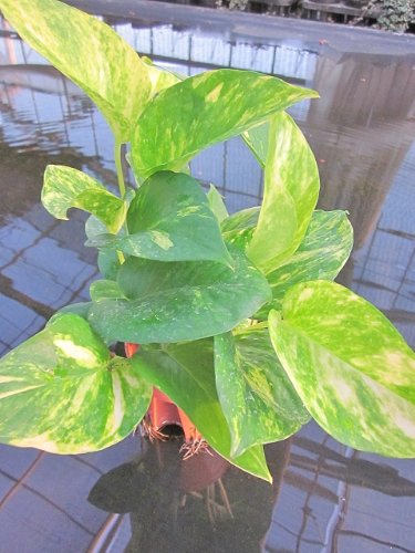 ポトス、こちらも初心者でも育てられる観葉植物として人気です。 ウンベラータのような大きな葉ではなく、きれいな緑だったり黄色の班入りの物であったり。 つるを垂らすようにしてハンギングにしてもいいですね。