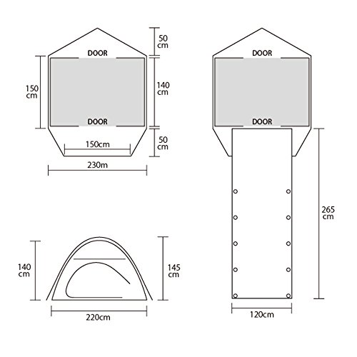 ●展開サイズ:長さ210㎝×幅140㎝×高さ140cm(ロングキャノピー265cm) ●収納サイズ:Φ18㎝×50㎝ ●重量:3921g