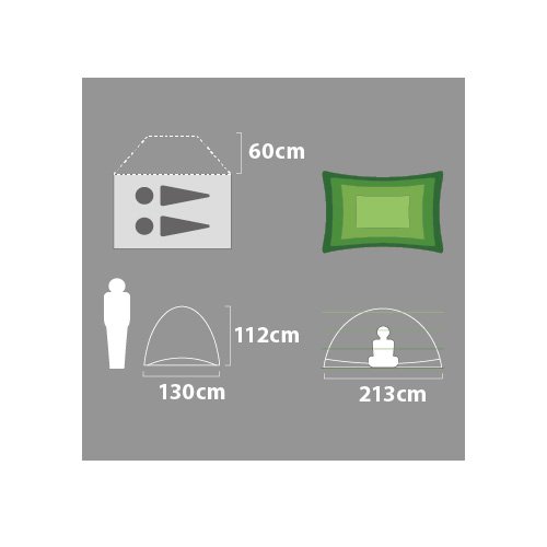 ●コンパクト性:軽量とはいえませんが、収納はかなりコンパクトになります。 ●設営のしやすさ:生地はやや厚めですが、単純な構造で設営自体は簡単です。 ●室内の広さ:2人用となっていますが、実質的に1人用のテントです。高さ130㎝は広々とした印象を与えます。 ●通気性:フライにはベンチレータが左右に設けられているので、テント内にこもった熱気を放出してくれます。