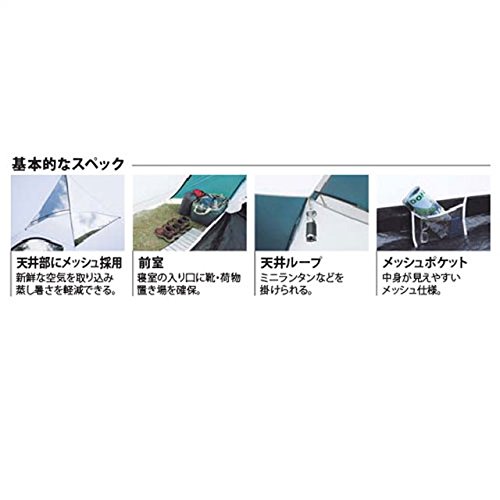 簡単な設営法として浸透した吊り下げ式ドームテントは、このダンロップが元祖です。夏の平地での使用を想定し、通気性を高めた3シーズン用のこのツーリングテントは、居住性と軽量化のバランスを両立させています。ダンロップが得意とする山岳テントのノウハウを生かしつつ、平地でも簡単に使用できるように企画されており、その耐久性は山岳テントに匹敵するほどです。