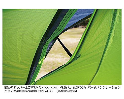 広い前室で居住性を充実させた2人用のテントです。別売りのポールで前面のフラップを張り出せば、前室の屋根部分を拡大することもできます。また各所に開閉式ベンチレーターやメッシュパネルを配し、通気性もアップしています。インナー単体や、フライシートのみでシェルターとして使用することもできます。もりだくさんなスペックですが、その分重量が重くなってしまったのが残念です。