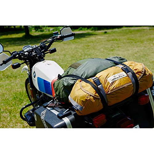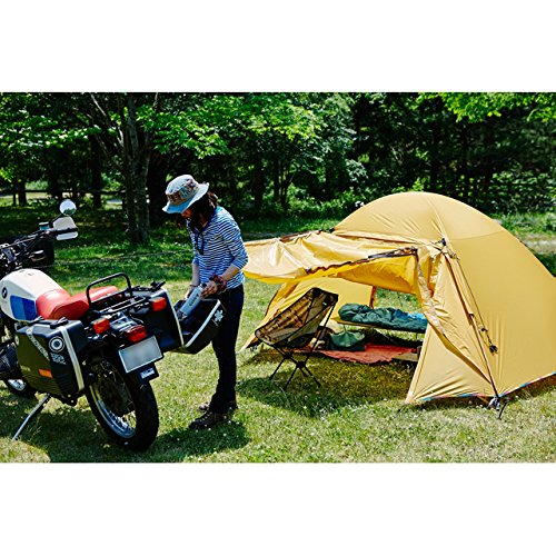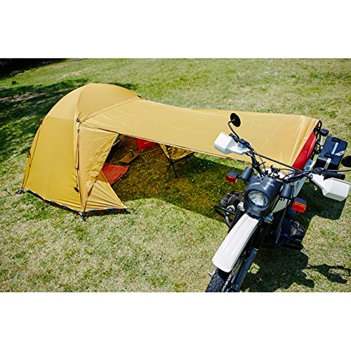 「ノマディカ」代表で自らもライダーである小林夕里子さんとのコラボモデルであるこのテントは、ライダーのことだけを考えたとの事で設営後のシルエットや設営の効率化を追求したテントです。特筆すべきはロングキャノピーで、雨よけ、日よけの役割を十分に果たしてくれます。出入口は前後に設けられており、通気性も抜群です。