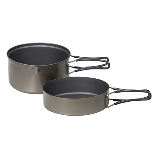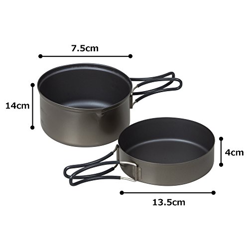 登山での使用を考えて購入しました。 2人分の調理を行うのに手頃な鍋を探していてこの商品にいきつきました。 使ってみると浅型なので予想より使いやすくフライパンとのセットなのですき焼きなどの焼く調理もできるので汎用性高いです。 2人分の鍋などにちょうどいい容量なので探している人が居たらオススメです。 同商品に1500もありますが個人的には大きすぎ重すぎるかなと。 すき焼きをした際は鍋とフライパン両方使いましたが料理によってはどちらか一方のみ持って行ったりと色々出来るのでペアやグループ山行中心の方におすすめです!