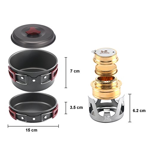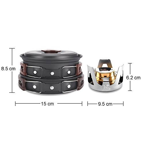 こちらはキャンプや登山などのアウトドアで使えるコッヘルセットになります。 こちらのセットは今から全てを揃える方におすすめです。 こちらのセット内容が2~3人用でとても充実しています。 セット内容: 鍋・フライパン・やかん・アルコールストーブ・箸・フォーク・スプーン・ボウル・お玉・しゃもじ・糸爪ブラシ・スイスアーミーカードがセットになっている豪華なセットなのに収納出来る優れもの。 このセットで全て揃ってしまい、料理や炊飯も出来るのに軽量で収納力も抜群なので初めてコッヘルを買う方にはおすすめです。 こちらのセットは1人~2人用もありますのでそちらもチェックして見て下さい。