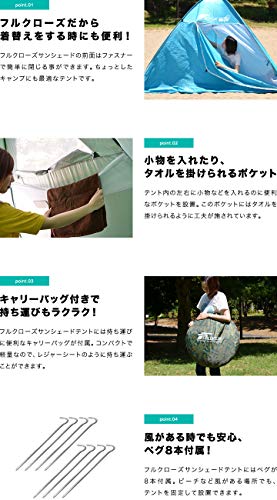 アウトドアでの設営も、キャリーバッグから取り出してパット開くだけ! 初心者でも簡単に設営できる簡単設計の、フルクローズサンシェードテントです。 撤収も簡単でコンパクトになり、キャリーバッグに入れれば、アウトドアのどこへでも気軽に持ち歩くことができるおすすめのポップアップテントになります。