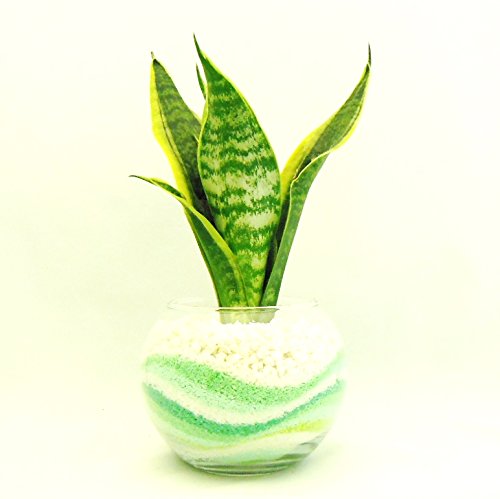 【送料無料】ミニ観葉植物 サンスベリア・バキュラリス陶器鉢付き(ハイドロカルチャー)