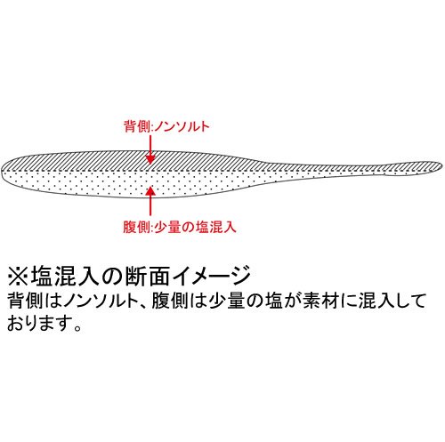 トレーラーワームとして使う場合、出来れば塩分が少ないタイプいいと思います。塩分が多いとボロボロになりやすいので、同じような形状ならノンソルトタイプでワーム崩れ気にせず使えます。