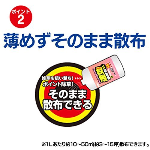 薬を薄める必要がなく、初心者でも使いやすい農薬。 ジョウロで水を撒く感覚で農薬を雑草にかけると、3日くらいで草が枯れはじめます。 草に農薬をかけただけで、根っこの部分にもちゃんと薬が染み込み効果があるので、スギナの駆除方法に向いている農薬です。
