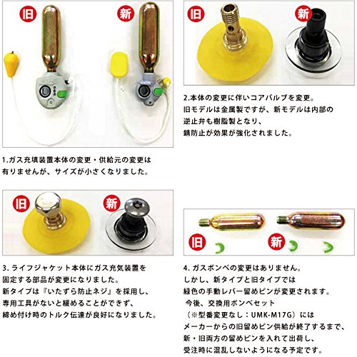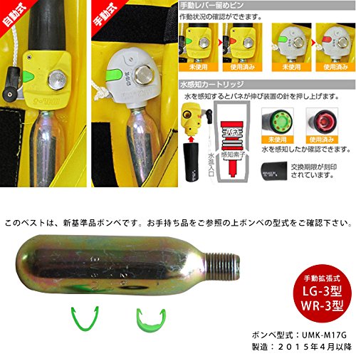 自動膨張と最も異なるポイントは、雨や波での膨張が起きない事。ガスを抜いてボンベを交換すれば、再度使用する事が出来ますが、誤作動での手間が掛からない事が大きなメリットです。波を被りやすい船釣りでの使用をお考えの方は、このタイプも検討してみてください。
