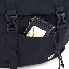 メイン収納スペースのフタの裏には、ジッパー付きのポケットが付いていて小物の整理を持ち運ぶのに便利な収納スペースになっています。また、サイドには便利なメッシュポケットが付いているのですぐ取り出したいものを入れるのに使い勝手が良くなっています。 さらに、奥行きたっぷりのフロントにある外ポケットには、隠れポケットとサイドポケットが付いていて、色々な使い方ができる便利に使えるアイテムです。 表面のループ状のナイロンテープには、カラビナを使って小物入れやコインケースなどを付けたりと自分好みのアレンジをすることができます。