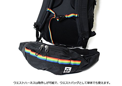 背面部にはしっかりとパッドが入っているので、快適な背負い心地のチャムスリュックで、さらに、ウエストハーネスを取り外すことができて、ウエストバッグとして使うことができるのでとても便利な設計になっています。 フロント部にはアウトドアコードのループが付いているので、カラビナで小袋などを取り付けて自分好みのスタイルにすることができます。 また、ボトム部のポケット内にはレインカバーも付いているので突然の雨でも安心できますね!