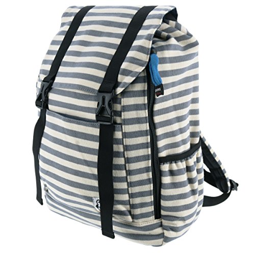 フロント側にはジッパーポケットが付いていて、書類などが入れられるアクセスのよいスペースがあり、リュックの両サイドにはメッシュポケットが付いているので飲み物などを入れることができます。 また、メイン収納スペースの内側にはパソコンスリーブが付いているので、パソコンの持ち運びにも便利に使えます。 フロント面にループ状のナイロンテープが付いているのでカラビナなどで小物類を付けることもできるようになっていておすすめです。