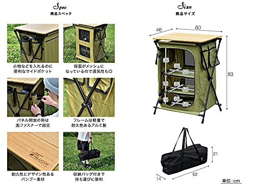 食器だけでなく、食材や調理器具も一緒に収納でき、テント内をすっきりさせるのにも役立ちます。