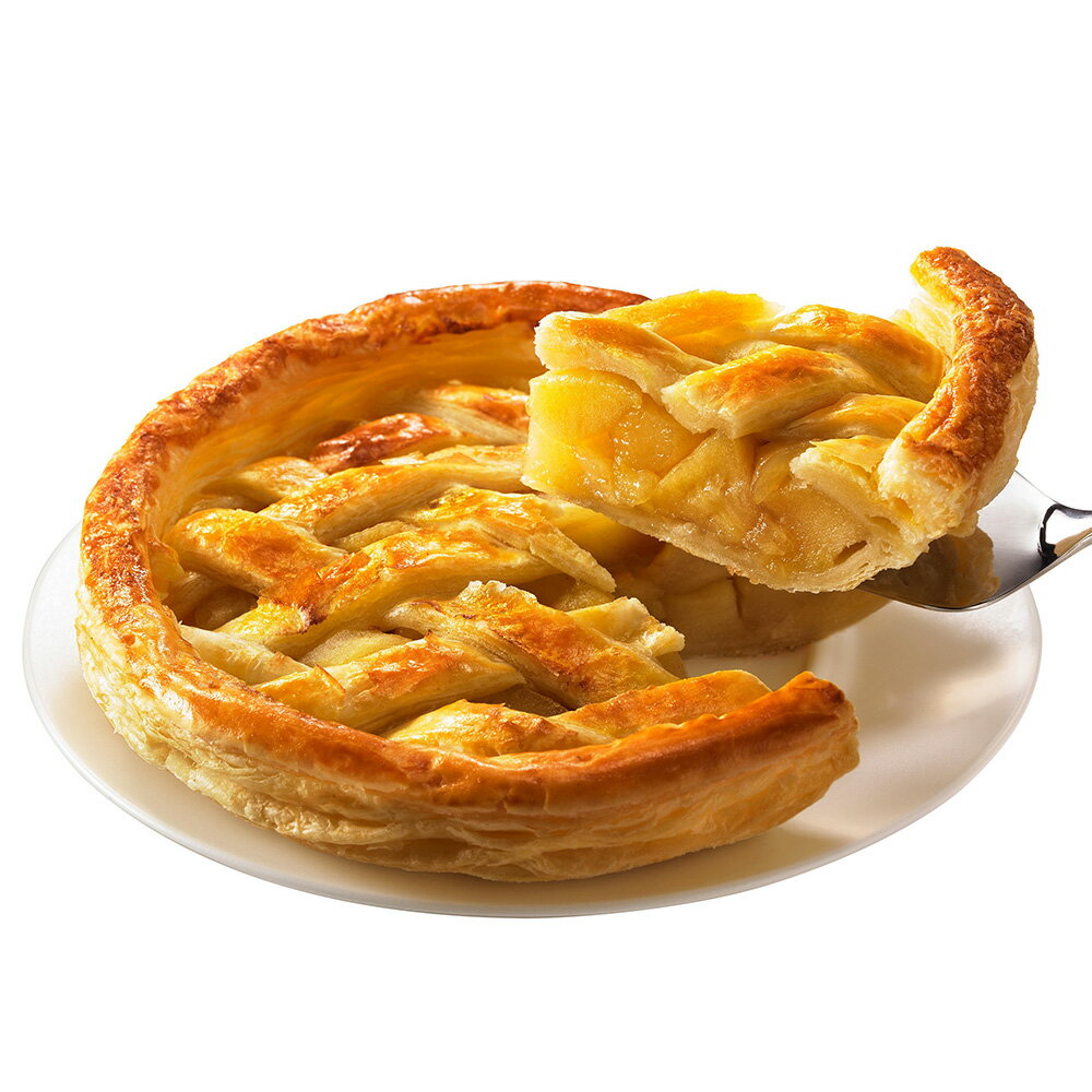 【材料】 ●パイシート、●バナナ、●チョコレートソース、●玉子、●塩 (それぞれパイシートの大きさに合わせて適宜でご使用下さい。) 【作り方】 1.卵黄1個に水少々、塩少々を良く混ぜ合わせます。 2.パイシートの端に①をぬり、パイシートを繋ぎ合わせます。 3.②をめん棒などでよくのばします。 4.③の作業後、パイシートの表面にフォーク等で満遍なく小さな窪みを作ります。 5.新しいパイシートを用意し、約1㎝幅ほどの帯状にきります。 6.④を型に入れて、はみ出した余分な生地を取り除きます。 7.⑤に切ったバナナを敷きつめ、上からチョコレートソースをかけます。 8.⑦の上に⑤を置いて表面に①を塗ります。 9.をプレヒート済みのスキレット等に入れて焼きます。 約30分で完成です。