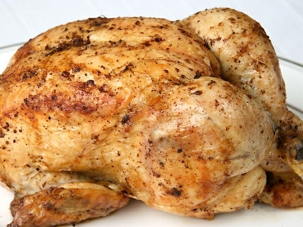 【材料】 ●鶏肉1.5kgくらいを1羽、骨ごと1/2カット ●ジャガイモ 1個 ●ニンジン 1本 【作り方】 1.表面に塩・こしょうをして、フライパンで焼き色をつける。 2.その後、180℃のオーブンで20-30分加熱する。 3.ジャガイモを洗い、ホイルで巻いて160℃で1時間加熱する。 4.ニンジンを剥き、火が入るまで水からゆでる。