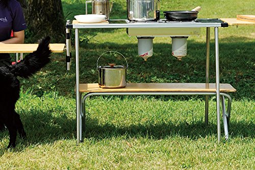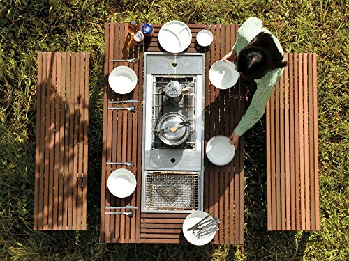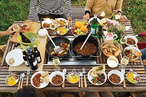 デイキャンプで食事や飲み物をどこに置きますか?手で持ったままデイキャンプ!と言うわけにはいきせんよね。そこで、持ち物の一つとして準備する道具がテーブルです。ここではスノーピークから販売されているテーブル「ワンアクションテーブル」を紹介していますが、この商品のおすすめの所はテーブルの真ん中に穴が開いておりコンロを入れる事が出来る点です。コンロとテーブルがほぼフラットになる為圧迫感がなく、バーベキューで焼いた食材を子供でも取りやすくなります。