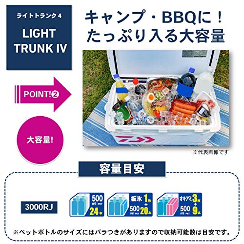 出典: https://www.amazon.co.jp/%E3%83%80%E3%82%A4%E3%83%AF-Daiwa-%E3%82%AF%E3%83%BC%E3%83%A9%E3%83%BC%E3%83%9C%E3%83%83%E3%82%AF%E3%82%B9-%E3%83%A9%E3%82%A4%E3%83%88%E3%83%88%E3%83%A9%E3%83%B3%E3%82%AF4-S3000RJ/dp/B00T3RSIH8/ref=sr_1_7?ie=UTF8&qid=1514241953&sr=8-7&keywords=%E3%82%AF%E3%83%BC%E3%83%A9%E3%83%BC%E3%83%9C%E3%83%83%E3%82%AF%E3%82%B9&refinements=p_89%3ADaiwa%28%E3%83%80%E3%82%A4%E3%83%AF%29大容量かつ、高い保冷力を持ち、釣り時など様々なアウトドアシーンで活躍することができるクーラーボックスです。 左右どちらからでも開閉できる両開きの蓋が特徴で、持ち運びがしやすく、船の上でも受け渡しが便利なロングハンドルを採用しています。化学的な消臭方法で臭いを封じ込める、強力消臭機能が備わっています。