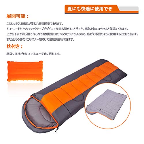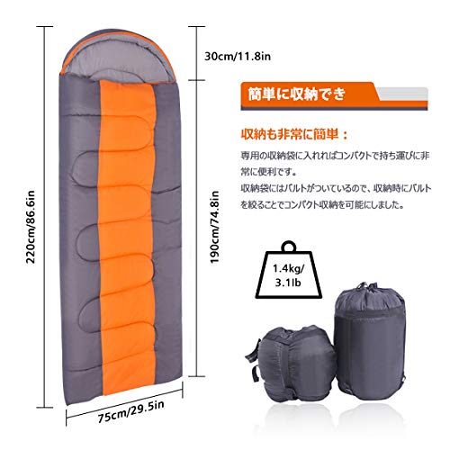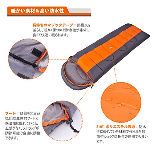 OUTERDO 寝袋 封筒型 シュラフ 軽量 防水保温 コンパクト 丸洗い 1.4kg アウトドア 登山 キャンプ 車中泊 防災 オールシーズン 収納袋付き