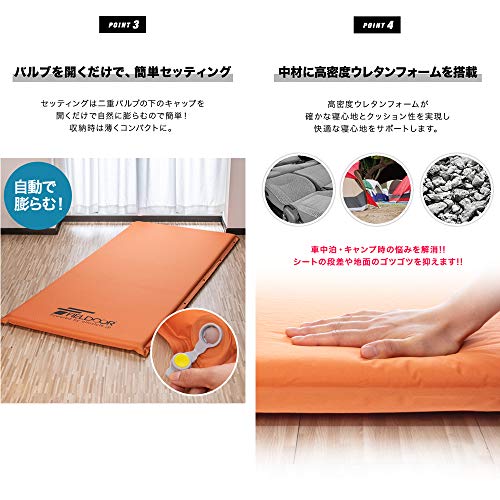 出典: https://www.amazon.co.jp/FIELDOOR-%E8%87%AA%E5%8B%95%E8%86%A8%E5%BC%B5%E3%83%9E%E3%83%83%E3%83%88%E3%83%AC%E3%82%B9-%E9%AB%98%E5%AF%86%E5%BA%A6%E3%82%A6%E3%83%AC%E3%82%BF%E3%83%B3%E3%83%95%E3%82%A9%E3%83%BC%E3%83%A0-%E3%82%A4%E3%83%B3%E3%83%95%E3%83%AC%E3%83%BC%E3%82%BF%E3%83%96%E3%83%AB-%E5%8E%9A%E3%81%9510%C3%97%E5%B9%85120%C3%97%E9%95%B7%E3%81%95195cm/dp/B01JHQ85HW/ref=sr_1_8?ie=UTF8&qid=1514434548&sr=8-8&keywords=%E3%82%A4%E3%83%B3%E3%83%95%E3%83%AC%E3%83%BC%E3%82%BF%E3%83%BC%E3%83%9E%E3%83%83%E3%83%88&refinements=p_89%3AFIELDOOR%28%E3%83%95%E3%82%A3%E3%83%BC%E3%83%AB%E3%83%89%E3%82%A2%29キャンプ時や登山時などの際、テントで宿泊する場合のアウトドアシーンや、車中泊する際などに使用する事が出来ます。Lサイズと大きく、二人で寝ていても気になりません。 収納もコンパクトにすることができ、車の片隅に置いておいても気になりません。使用したい時に取り出し、簡単に出す事ができ、バルブを開くだけで自然に膨らんでいくので、セッティング方法も便利ですのでおすすめです。