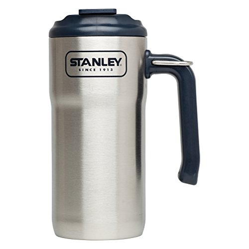 スタンレー真空マグボトルにフレンチプレス(スタンレーマグ専用のコーヒーを淹れる部品)が付いたセットです。コーヒーを淹れながらそのまま持ち歩くことができるので便利です。コーヒー以外のものを入れる時はフレンチプレスを取り外して使用することも可能なので1台2役のお得なセットです。 上部のフォールディングループは折りたたみ式でフックなどを掛けて使わない時は邪魔にならない仕様です。 「挽いたコーヒー豆を持ち歩き、好きなところで淹れたてコーヒーを飲む」そんなロマンを叶えてくれるスタンレーの真空マグです。