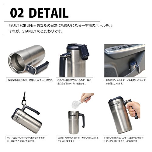 大きなサイズの0.47Lサイズのスタンレー真空マグです。取っ手部分は厚手の手袋などをしていても手が入るように十分な空間が取られています。アウトドアでたっぷり温かいお湯を使いたいならこちらのスタンレーマグがおすすめです。 スタンレーマグの蓋部分は可動式なので下げた時に漏れにくいよう飲みくちの位置を調整することができます。