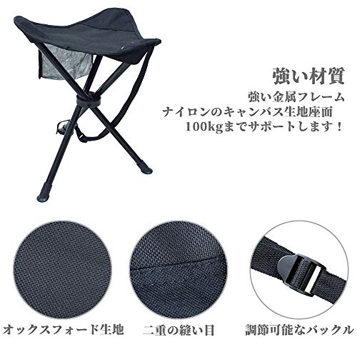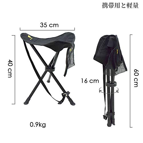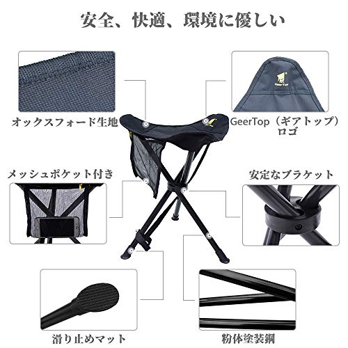 GEERTOP 折りたたみ 椅子 チェア 三脚 アウトドア キャンプ お釣り用 メッシュポケット付き スツール 超軽量 コンパクト (ブラック)