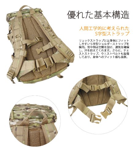 強靭性が特徴のミリタリーリュック。長く背負っていても疲れにくい設計、多くの機能が盛り込まれています。