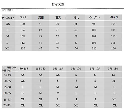 サイズ(cm) S / 身長 | 152〜158、胸囲 | 77〜83、胴囲 | 58〜64 M / 身長 | 157〜163、胸囲 | 80〜86、胴囲 | 61〜67 L / 身長 | 162〜168、胸囲 | 83〜89、胴囲 | 64〜70 LL / 身長 | 167〜173、胸囲 | 86〜92、胴囲 | 67〜73