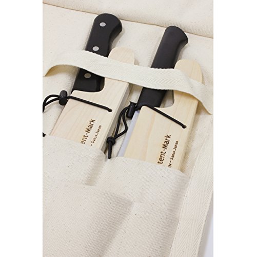 多彩なポケットで、長いものから短いものまで整理して入れられます。フラップが調理道具をホコリから守ってくれますし、グロメットつきなのでキッチンスペースに吊り下げて使用することもできます。テンマクデザインのブランドロゴワッペンがさりげなく付いているのもオシャレです。
