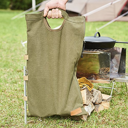サイドのファスナーを全開すれば焚き火道具をなんでも放り込める縦長の袋ですが、ファスナーを途中まで開けた状態にすれば、ケースを立てた状態で使用できます。これを焚き火の時にそばに置いておけば、道具箱のように中のものを取り出すのに便利です。
