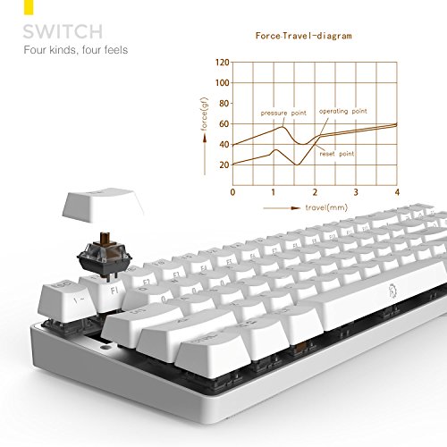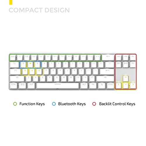 打鍵感もよく、軽快にタイピングすることが出来る茶軸式のキーボードです。ボディーには白で、清潔感とスタイリッシュ感を兼ね備えていて、 Bluetooth4.0を搭載していますので有線と無線の両対応です。 キーボードをパソコンから離していても、操作できますのでおすすめです。また、7種類のRGBイルミネーションが美しく輝きます。青や赤やその他5種類の色が鮮やかに交わり、洗練されたデザインなので人気があります。 コンパクトな71キー設定で作られ、5000万回のキーストロークにも耐えられます。機能性に優れた茶軸のキーボードですので、購入するデメリットが少ないのでおすすめです!
