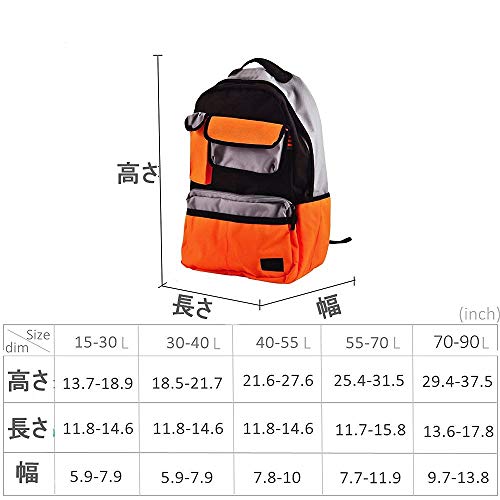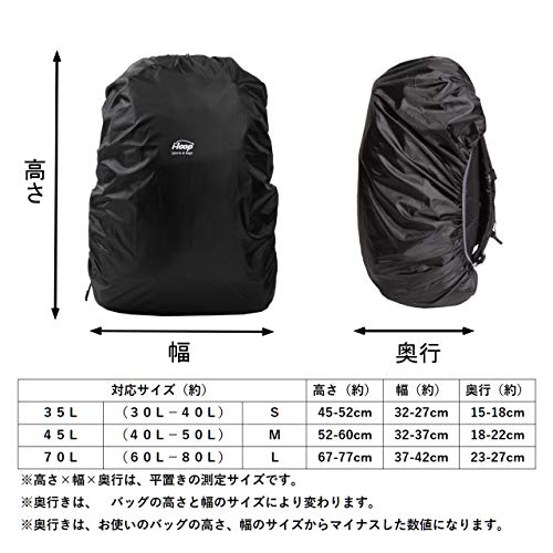 Sサイズ / 15L~35L用 約32×55×15cm 収納時 / 約20×10×8cm 重さ / 約100g Mサイズ / 35L~55L用 約42×73×20cm 収納時 / 約21×10×8cm 重さ / 約140g Lサイズ / 55L~80L用 約45×80×24cm 収納時 / 約22×10×8cm 重さ / 約180g リュックの容量にあわせてフィットしますので重宝します!