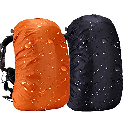Sunhel アウトドアリュックカバー 雨よけ ブラック+オレンジ 収納袋付き 2個入り オレンジ+ブラック S:(18-35)