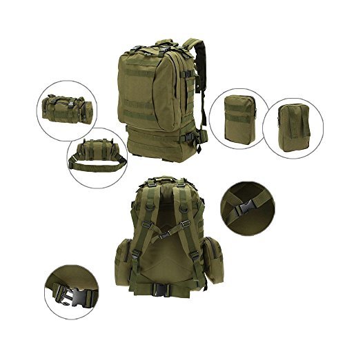 アウトドア 多機能 大容量 55L 迷彩柄 戦術的な軍事リュックサック 取り外し可能 組み合わせック 実用的 なバックパック 男女兼用 防水 軽量 耐久性 多目的 海外旅行/修学旅行/遠足用 /日帰り登山用キャンプ/防災などに(アーミーグリーン)