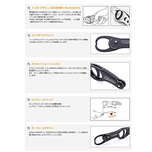 オーシャングリップは、「1日中携帯し、実際に使う際には、不安定な姿勢のまま、片手で扱う場面が少なくない」という、フィッシュグリップならではの使用環境を考慮し、軽量化を追求した設計になっています。 もちろん、過酷な環境で使用する場合に重要な 堅牢性 にも配慮が払われていますし (詳細は後述)、モデルによっては、軽量化を実現するための ボディーの余分な凹凸 の除去による、ホールド性の低下に対応するための関連アイテムも用意されています。