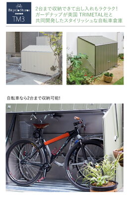 イギリス「TRIMETAL」社の「メタルシェッド」は、モダンに男前なカッコよさを加えた力強いデザインです。かといって無骨さはなく、スマートな印象をしています。 自転車やバイク、車のタイヤ、サーフボードなどの大きくて重いものから、ガーデニング用品、DIYアイテムなど小型でよく使うものをしっかり収納できます。 このメタルシェッドにも床がつかないので、購入前にお店へ確認しましょう。