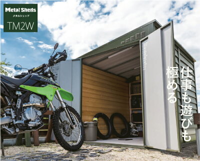 TM1よりも小型のメタルシェッド。このモダンなデザインが気に入ったり、頑丈な物置が欲しいけど、お庭のスペースがあまりない場合におすすめです。 バイク1台と備品が置けるぐらいの収納力になります。大型バイクなら受注生産のTM2ワイドを選ぶ必要があります。バイクや自転車ではなく、ガーデニング用品を入れるのにも最適ですよ。