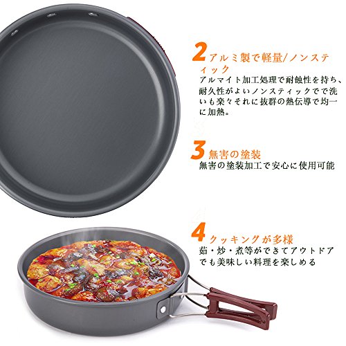 キャンプ鍋 キャンプ用品セット アルミ クッカー ,BBQ 食器 キャンプ用品 登山用 アウトドア 行楽 大便利 ステンレス箸 スプーン フォーク 折り畳み アウトドア鍋 ポータブル キャンピング 鍋 調理器具 セット ノンスティックフライパン ナイロンバッグ収納 おすすめ 人気 おしゃれ