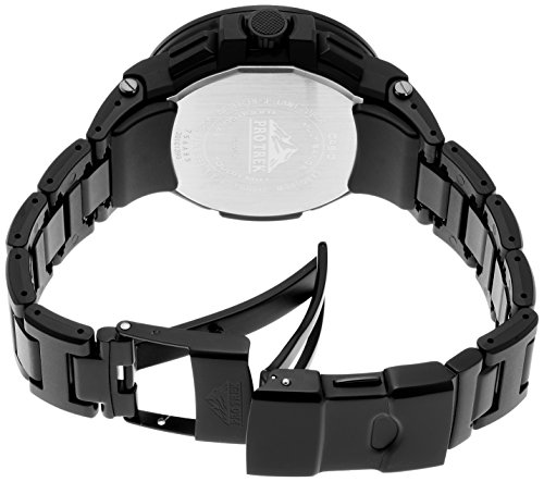インデックスを大きく設定し、アウトドアや登山での視認性を高めています。オールブラックのモデルで、バンドに、樹脂を使用し、ダブルロック・スライドアジャスト機構付きワンプッシュ三つ折れ式中留方式を採用しています。このバンドがレビューでも好評でした。