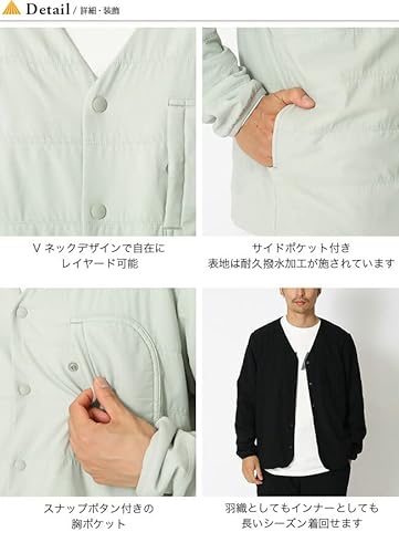 こちらのカーディガンはユニセックスとなっていて女性も男性も着用可能です。表地は撥水加工が施され、多少の雨の中でも快適に着られるでしょう。