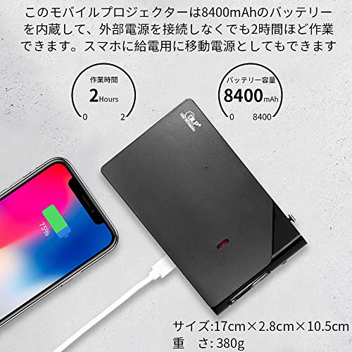 出典: https://www.amazon.co.jp/ZenBeam-E1-%E3%83%97%E3%83%AD%E3%82%B8%E3%82%A7%E3%82%AF%E3%82%BF%E3%83%BC-5%E6%99%82%E9%96%93%E3%81%AE%E6%8A%95%E5%BD%B1%E6%99%82%E9%96%93-%E3%83%A2%E3%83%90%E3%82%A4%E3%83%AB%E3%83%90%E3%83%83%E3%83%86%E3%83%AA%E3%83%BC/dp/B01N5TBCGH/ref=sr_1_2?ie=UTF8&qid=1516488960&sr=8-2&keywords=%E3%83%A2%E3%83%90%E3%82%A4%E3%83%AB%E3%83%97%E3%83%AD%E3%82%B8%E3%82%A7%E3%82%AF%E3%82%BF%E3%83%BCこちらのモバイルプロジェクターは、手のひらサイズで持ち運びもしやすい小型のミニLEDプロジェクターです。その重量はわずか307gと軽量です。輝度とコントラストが最大で30%向上していて、消費電力を最大約10%削減します。