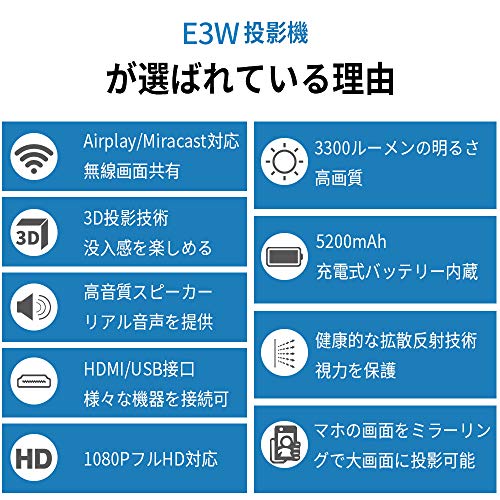 明るさは3300ルーメンと高く、高解像度のモバイルプロジェクターです。映像はっきりと鮮明に投写することができます。多彩な多機能インターフェースによりPCやテレビやゲーム機やスマートフォンやタブレット等と接続することが可能です。簡易的に映画を手軽に楽しむ事が出来ますのでおすすめです!