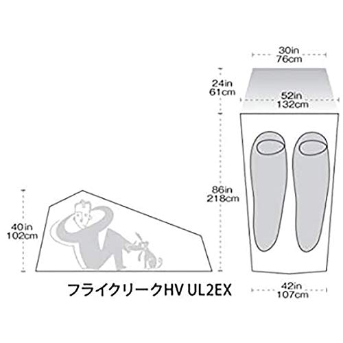 「フライクリークHV UL2EX」はフライクリークシリーズの2人用モデルの自立型山岳テントで、総重量は1160 gです。1人用モデルが 1040 gですので、増量はたったの120gと非常に軽い2人用テントです。ちなみに他のメーカーの2人用テントの総重量は2000㎏~3500㎏程度が多いので比べると圧倒的に軽いことがわかります。幅と奥行きもしっかり確保されており、余裕で二人が横になることができます。 特徴的なデザインをしており、キャンプ場でも目立ちますので非常に見つけやすいです。機能性以外にも変わったテントを探している方にもおすすめです。