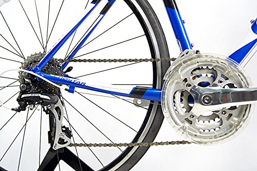ジオスブルーが美しい、クロモリのフレームにカーボンフォークの構成のスリムな軽量モデルです。更にSHIMANO TIAGRAフルコンポーネントで安定したシフティング、ブレーキの制御性で走りに特化したフラットバーロードです。価格も他のメーカーと比較して、コスパに優れたおすすめモデルです。