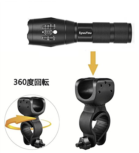 SyuuYou 自転車用 ヘッドライト LED懐中電灯 自転車高輝度ズーム式 ライトホルダー付き サイクルライト 5モード調光可能 自転車ライト ライトホルダーセット