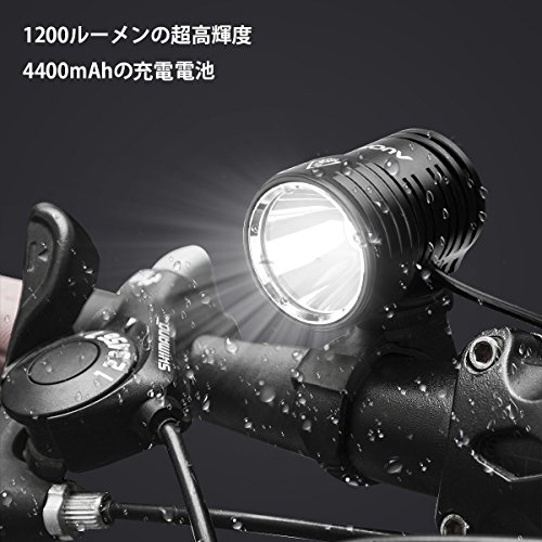 AUOPRO LED自転車ライト IPX-6防水 1200ルーメン 超高輝度 CREE XM-L2 USB充電 4400mAhバッテリー ロードバイクライト アウトドア専用 テールライト付き