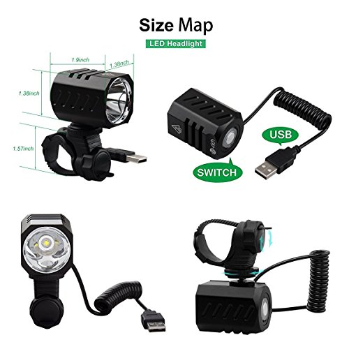 Te-Rich 自転車ライト 1200ルーメン LEDヘッドライト機能搭載 超高輝度 4モード(3段階の光度+ストロボ) 充電式バッテリー USB接続CREE XM-L2MYR