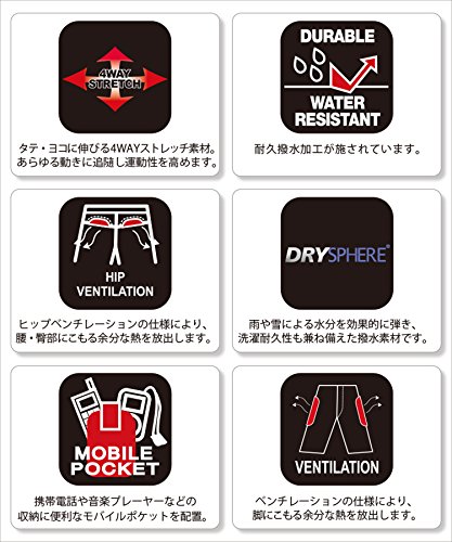 素 材:ドライテック3レイヤー[表:40デニール・ナイロン・リップストップ] 平均重量:250g 収納サイズ:8×8×15cm 特 徴:ロングボトムジッパー/撥水ジッパー(前立て)/立体裁断(ひざ)/すそ部分の摩耗強度を向上/サムエシステム/フロントジッパー付き(撥水ジッパー)/ネームタグ付き/スタッフバッグ付き サイズ(cm):身長 S=155~165、M=165~175、L=170~180、XL=175~185 胴囲 S=72-76、M=76-81、L=81-87、XL=87-93 ※-Sは通常サイズよりも股下が短いモデル。