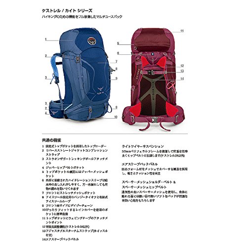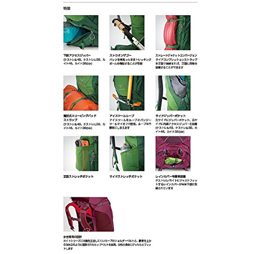 容 量:S/M=26リットル、M/L=28リットル ・寸 法:縦64×横30×奥32cm(M/L) 重 量:S/M=1.18kg、M/L=1.24kg ・推奨パッキングウェイト:7~14kg サイズ:S/M(第7頸椎骨~腰骨最上部=48.3cm以下)、M/L(第7頸椎骨~腰骨最上部=48.3cm以上) 生 地:メイン=210Dナイロンダブルダイヤモンドリップストップ、アクセント=420HDナイロンパッククロス