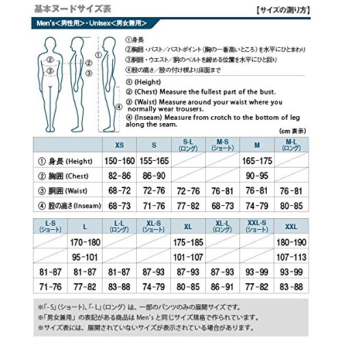 素 材:ジオライン(ポリエステル100%) 平均重量:170g サイズ(cm):身長 S=155~165、M=165~175、L=170~180、XL=175~185 胸囲 S=86~90、M=90-95、L=95-101、XL=101-107